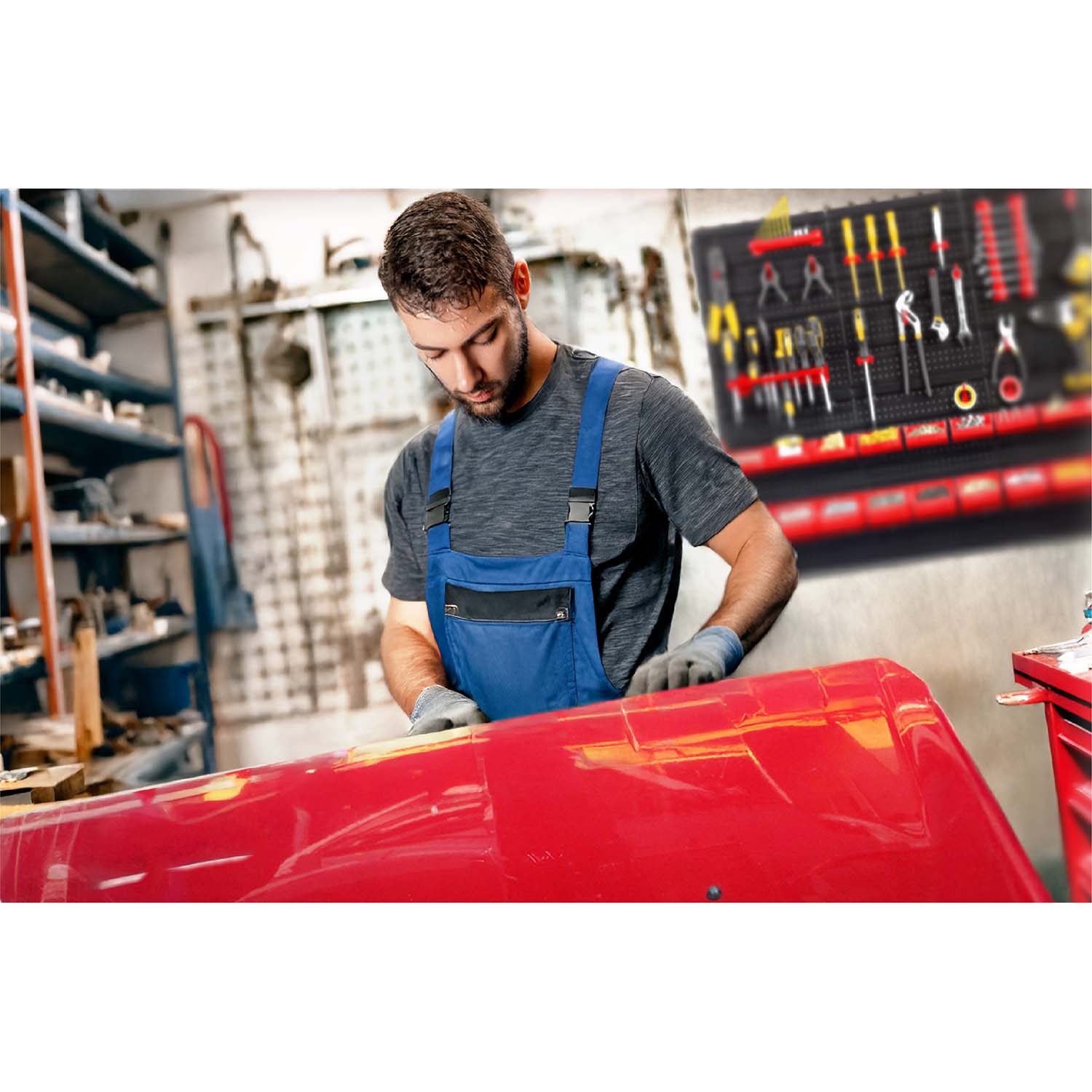 Tablica naścienna 96 x 76 cm zaprojektowana specjalnie do użytku warsztatowego – idealna do przechowywania i segregacji narzędzi oraz akcesoriów. Sprawdzi się zarówno w profesjonalnym serwisie, jak i w przydomowym garażu.