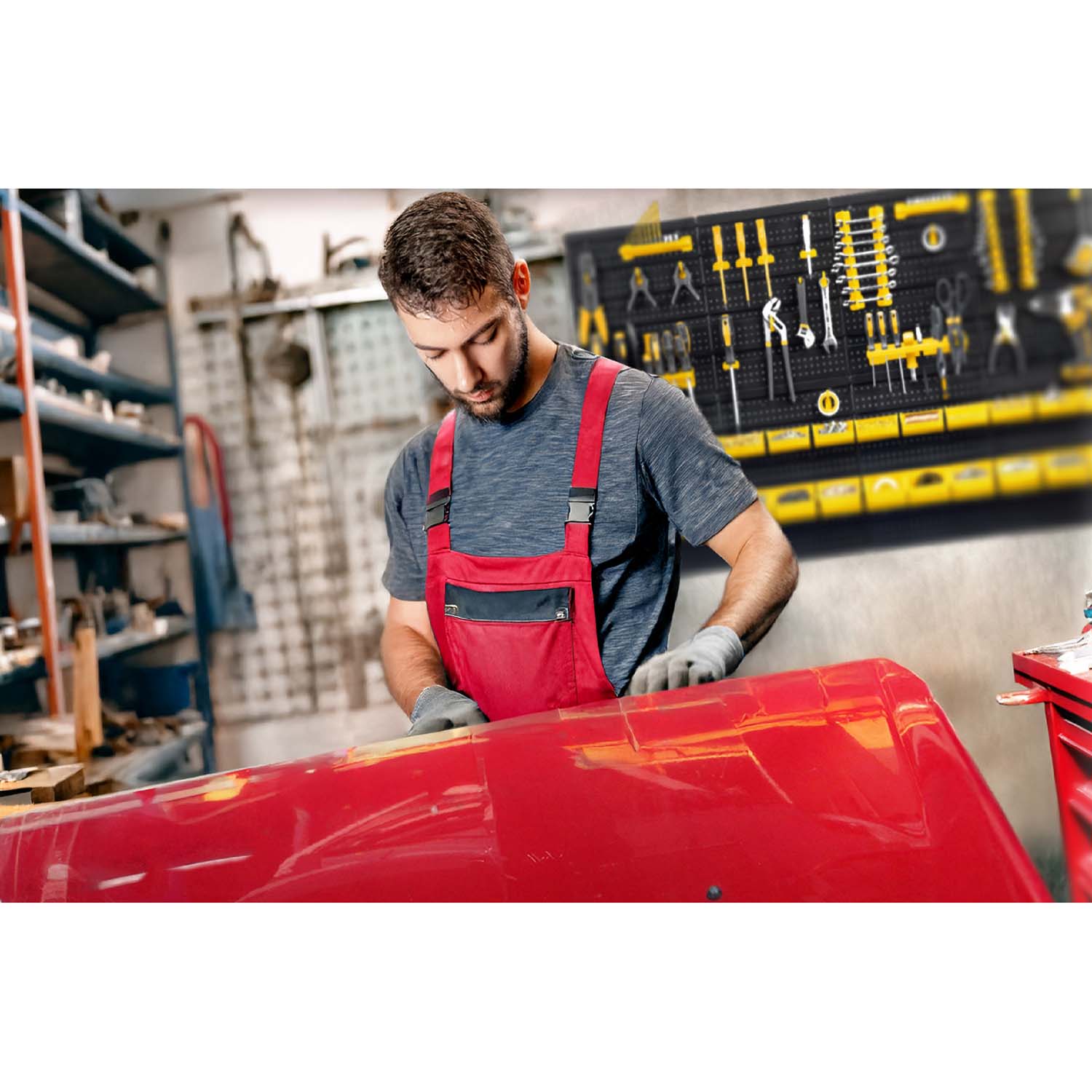 Tablica naścienna 128 x 76 cm zaprojektowana specjalnie do użytku warsztatowego – idealna do przechowywania i segregacji narzędzi oraz akcesoriów. Sprawdzi się zarówno w profesjonalnym serwisie, jak i w przydomowym garażu.
