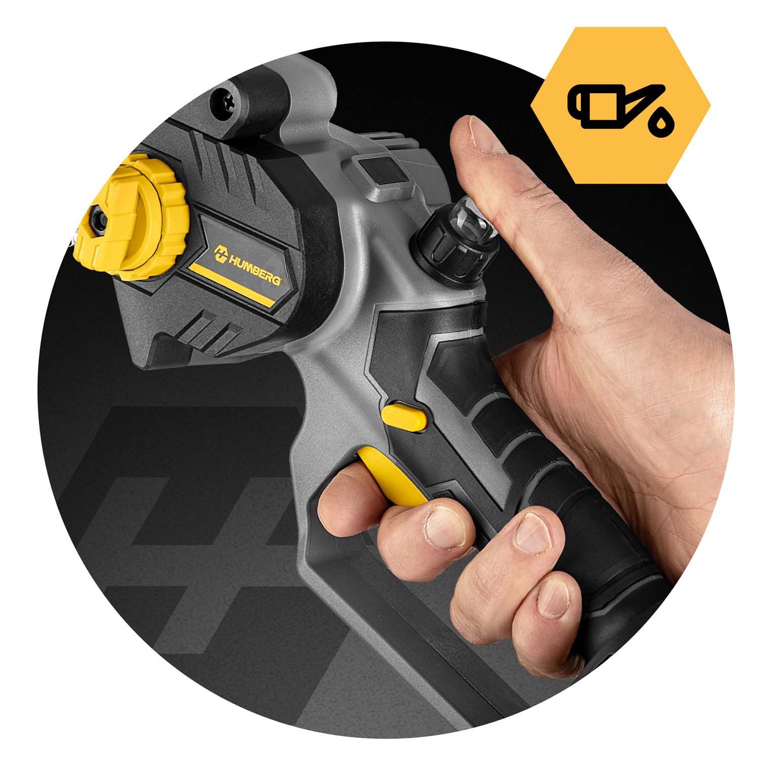 Pilarka smaruje łańcuch automatycznie, w regularnych odstępach czasu. Gdy zachodzi potrzeba, możesz w łatwy sposób nanieść dodatkowe smarowanie przy pomocy wbudowanej pompki. Smarowanie na wyciągnięcie palca.
