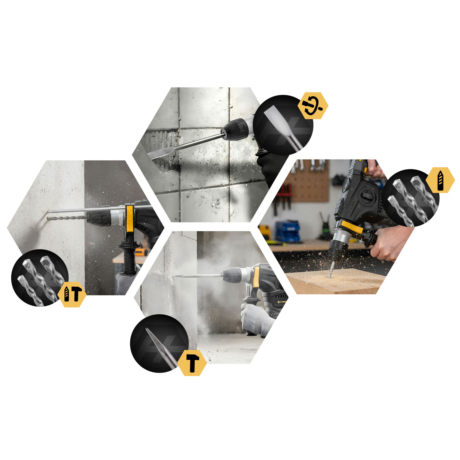 Ta młotowiertarka z ogranicznikiem głębokości to idealne narzędzie do precyzyjnego wiercenia w betonie, murze, drewnie i metalu. Ogranicznik pozwala ustawić dokładną głębokość wiercenia, co sprawia, że praca jest szybka, dokładna i powtarzalna – niezależnie od rodzaju zadania.