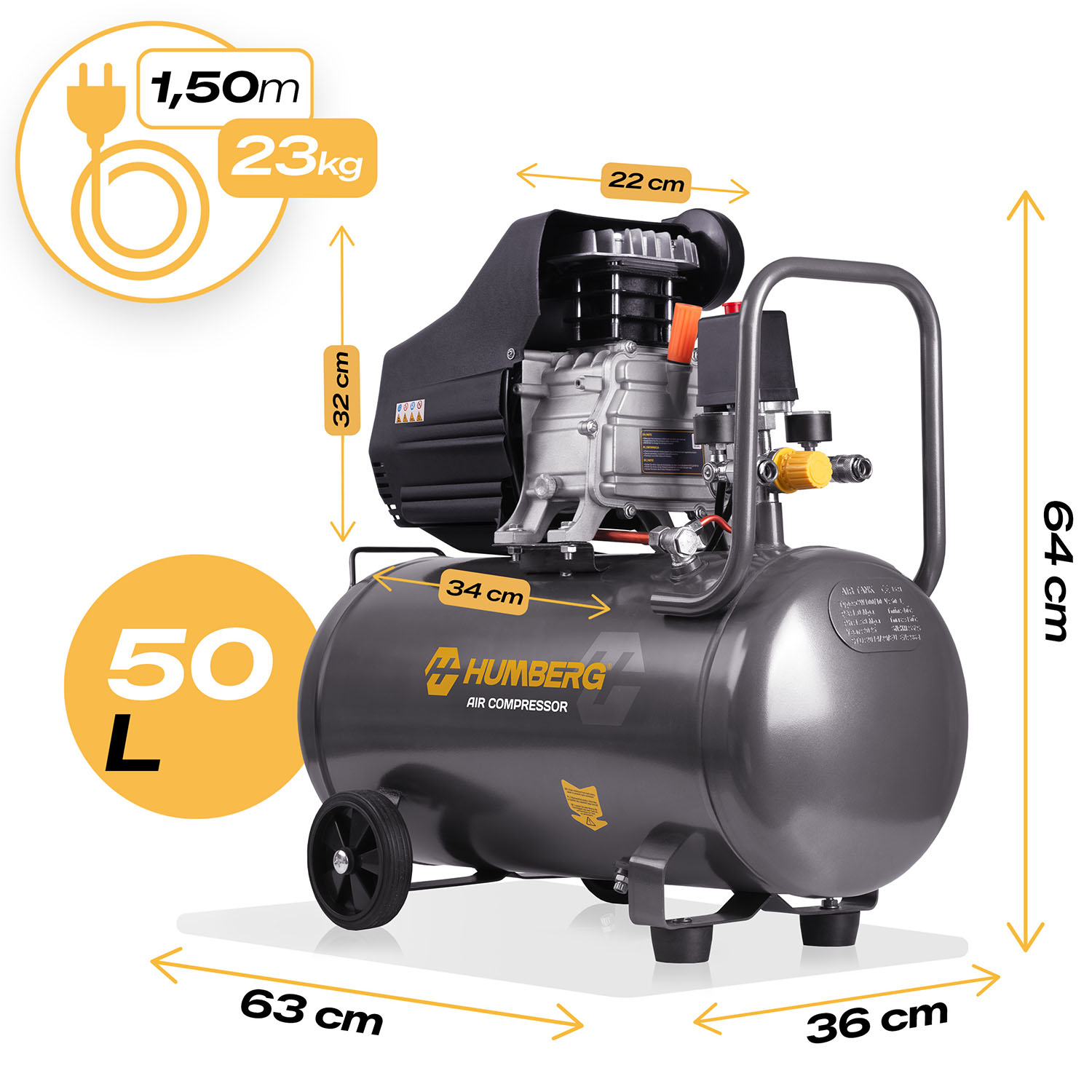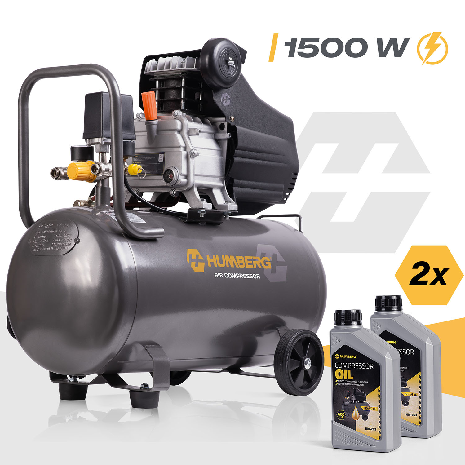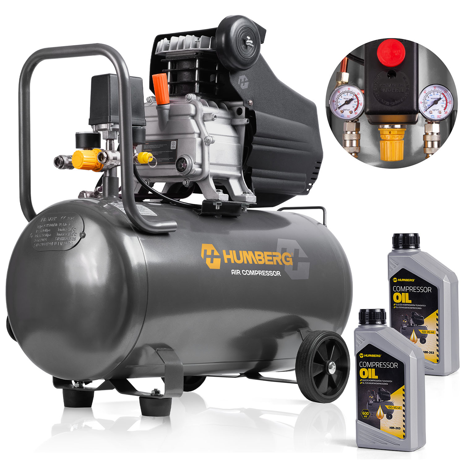 Zaawansowana pompa tłokowa |  2 x Olej w zestawie  |  Zbiornik 50 l  |  Wysoka jakość wykonania | Solidne kółka