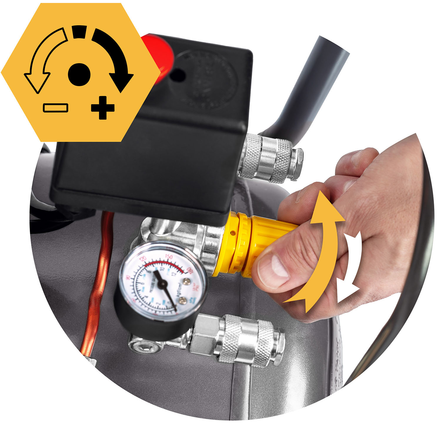 4. Zawór regulacyjny pozwala precyzyjnie dopasować ciśnienie do narzędzi.