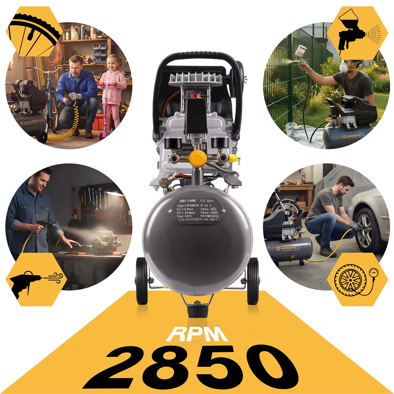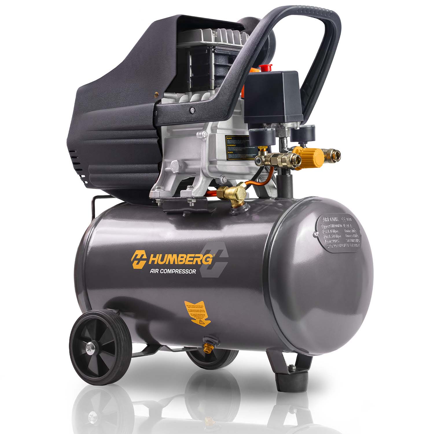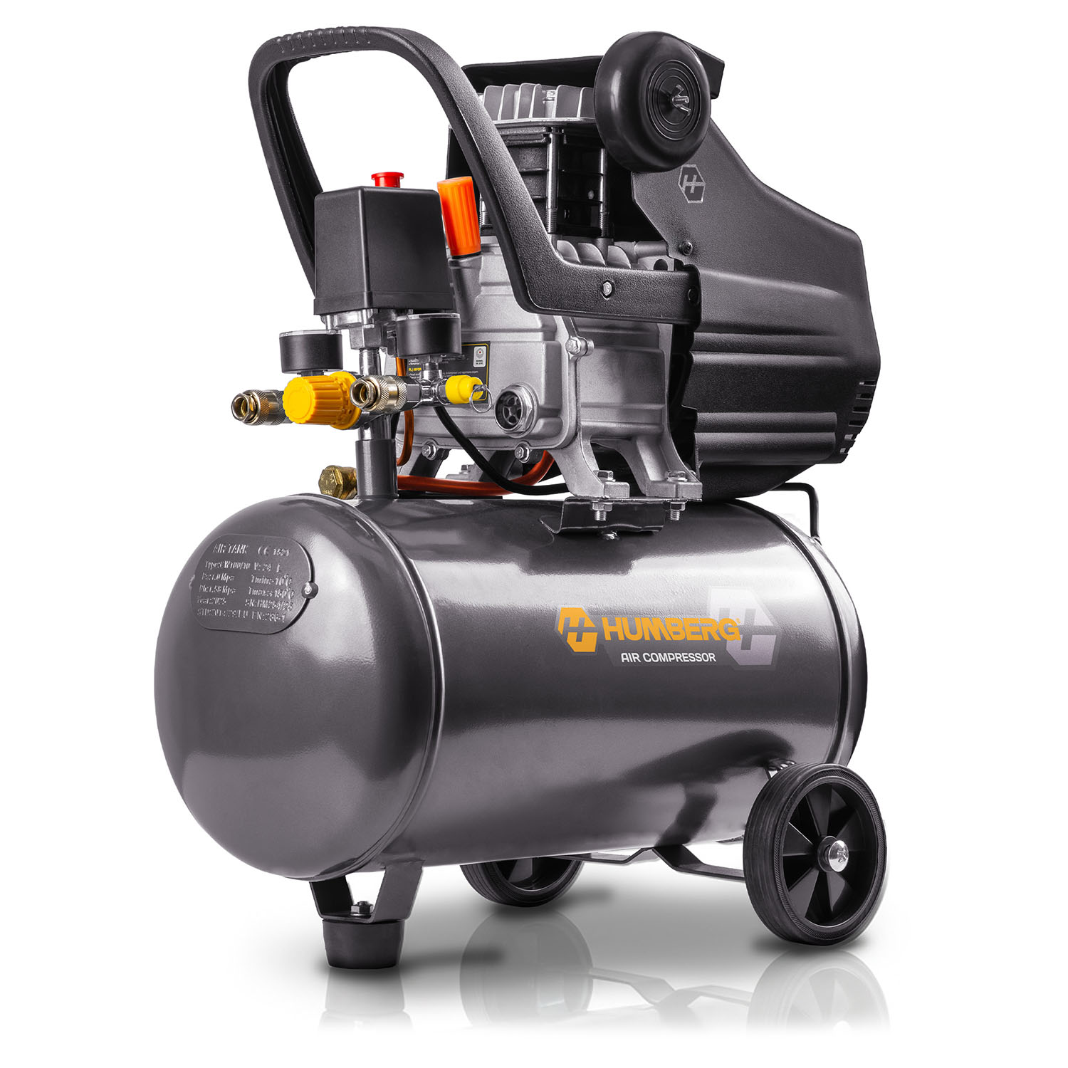 Zaawansowana pompa tłokowa |  Olej 600 ml w zestawie  |  Zbiornik 24 l  |  Wysoka jakość wykonania | Solidne kółka