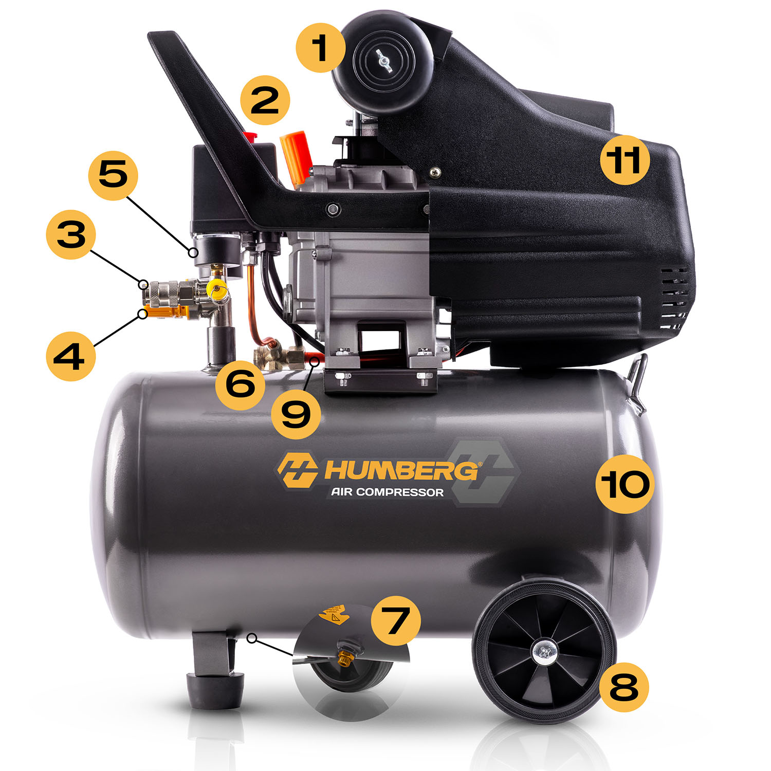 8. Koło ułatwia przemieszczanie kompresora.
