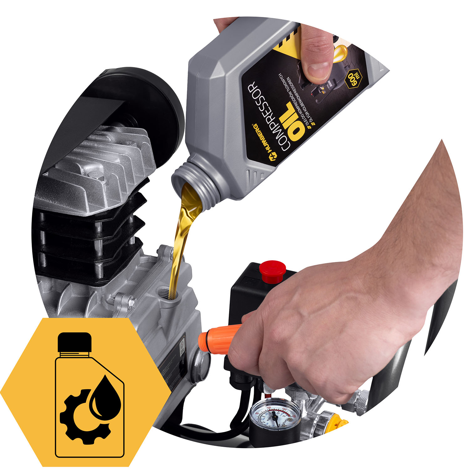 Zaawansowana pompa tłokowa z olejowym smarowaniem pracuje gładko i niezawodnie, nawet przy dużym obciążeniu. Każdy ruch tłoka to moc i wydajność, na której możesz polegać, zapewniająca szybkie i efektywne działanie narzędzi. W zestawie znajduje się olej, dzięki czemu kompresor jest od razu gotowy do pracy i dłużej utrzymuje optymalną kondycję.