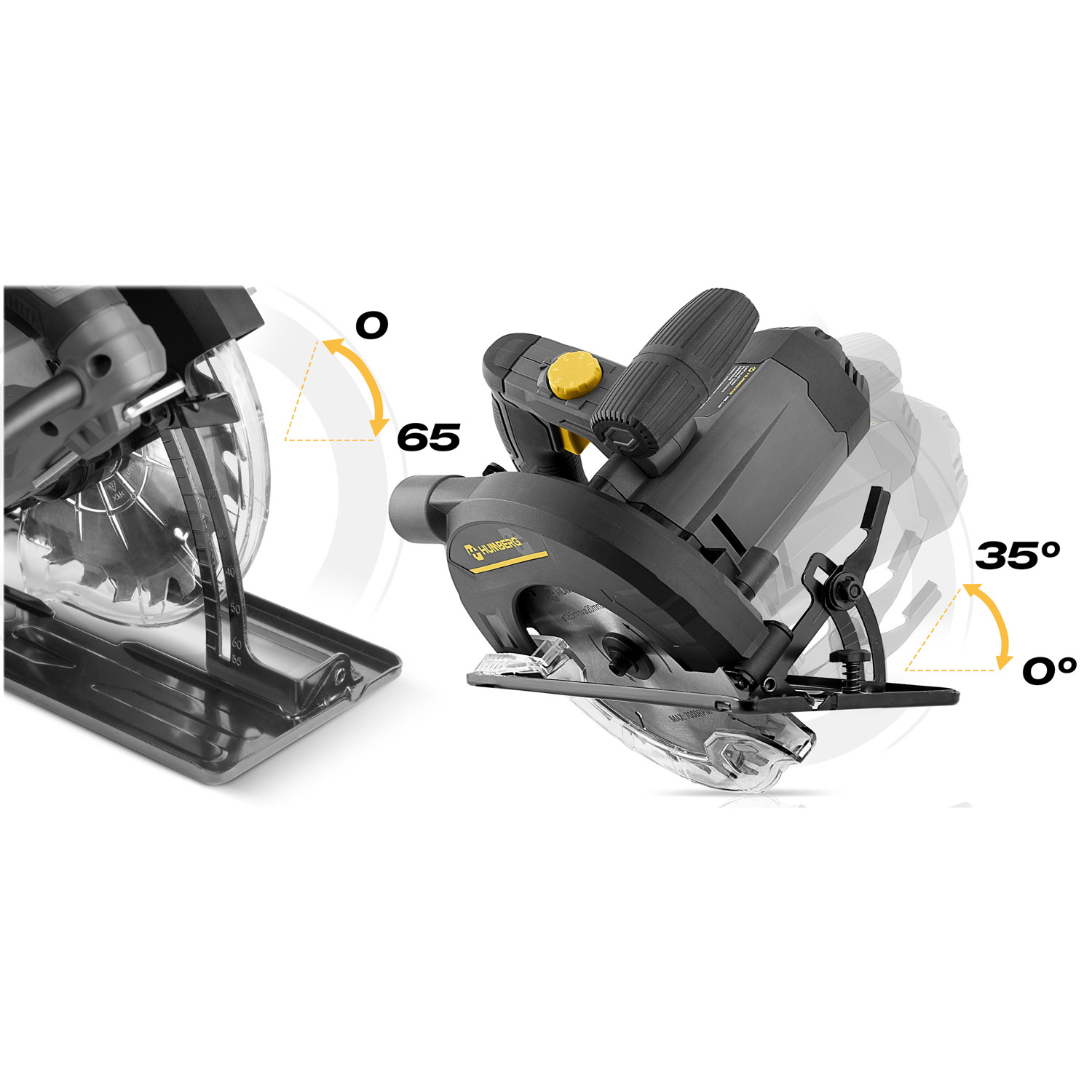 Pilarka tarczowa oferuje regulację nachylenia cięcia w zakresie 0–35°, co pozwala na wykonywanie precyzyjnych cięć pod różnymi kątami. Dodatkowo możliwa jest regulacja głębokości cięcia od 0 do 65 mm, co umożliwia dokładne dopasowanie narzędzia do grubości drewna i rodzaju materiału, zapewniając czyste i profesjonalne cięcie w każdej sytuacji.