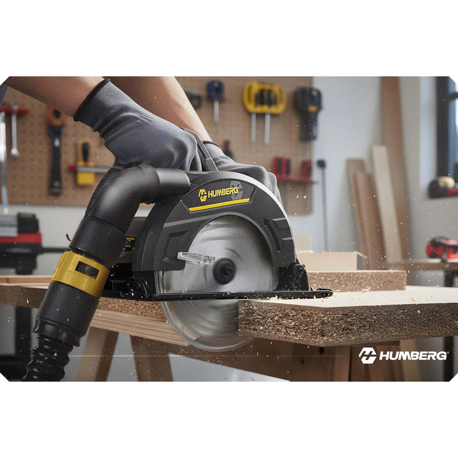 Pilarka tarczowa do drewna 1200 W Humberg HM-420 piła z prowadnicą odsysanie pyłu