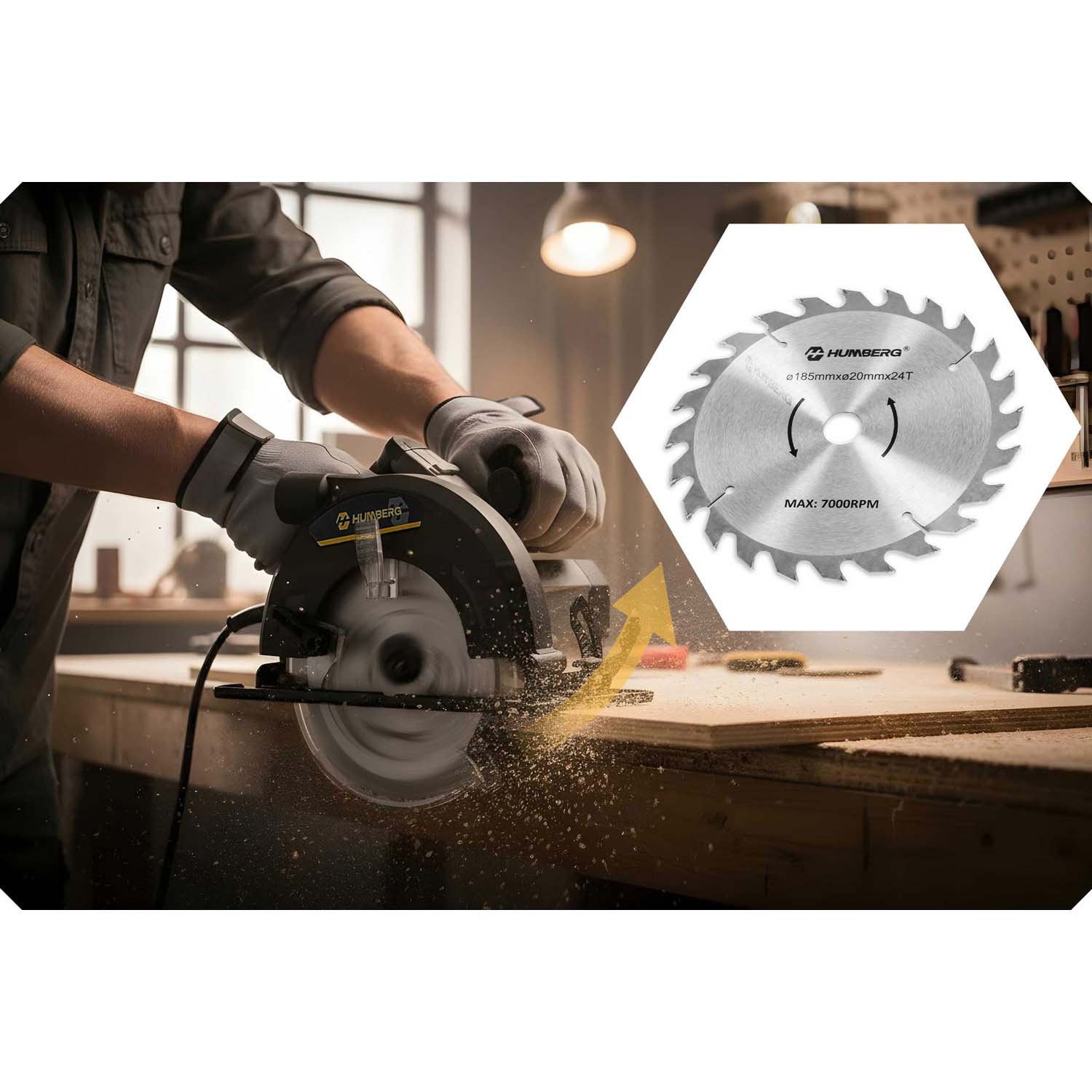 Tarcza o średnicy 185 mm z otworem montażowym 20 mm i 24 zębami zapewnia precyzyjne i szybkie cięcie drewna. Dzięki wysokiej ostrości zębów cięcie jest czyste i gładkie, bez szarpania materiału. Tarcza pracuje z maksymalną prędkością do 7000 obr./min, gwarantując wydajność i efektywność nawet przy wymagających zadaniach.
