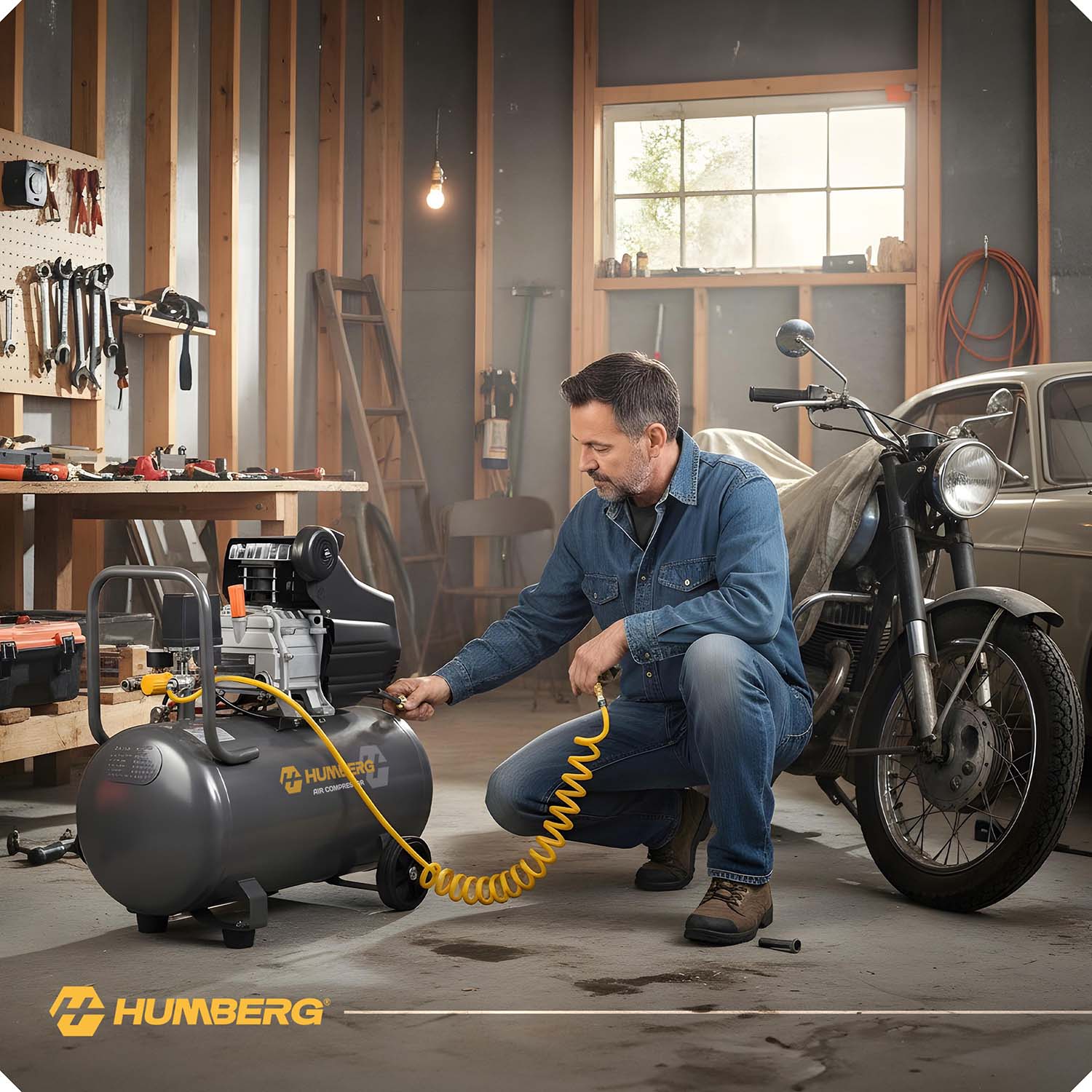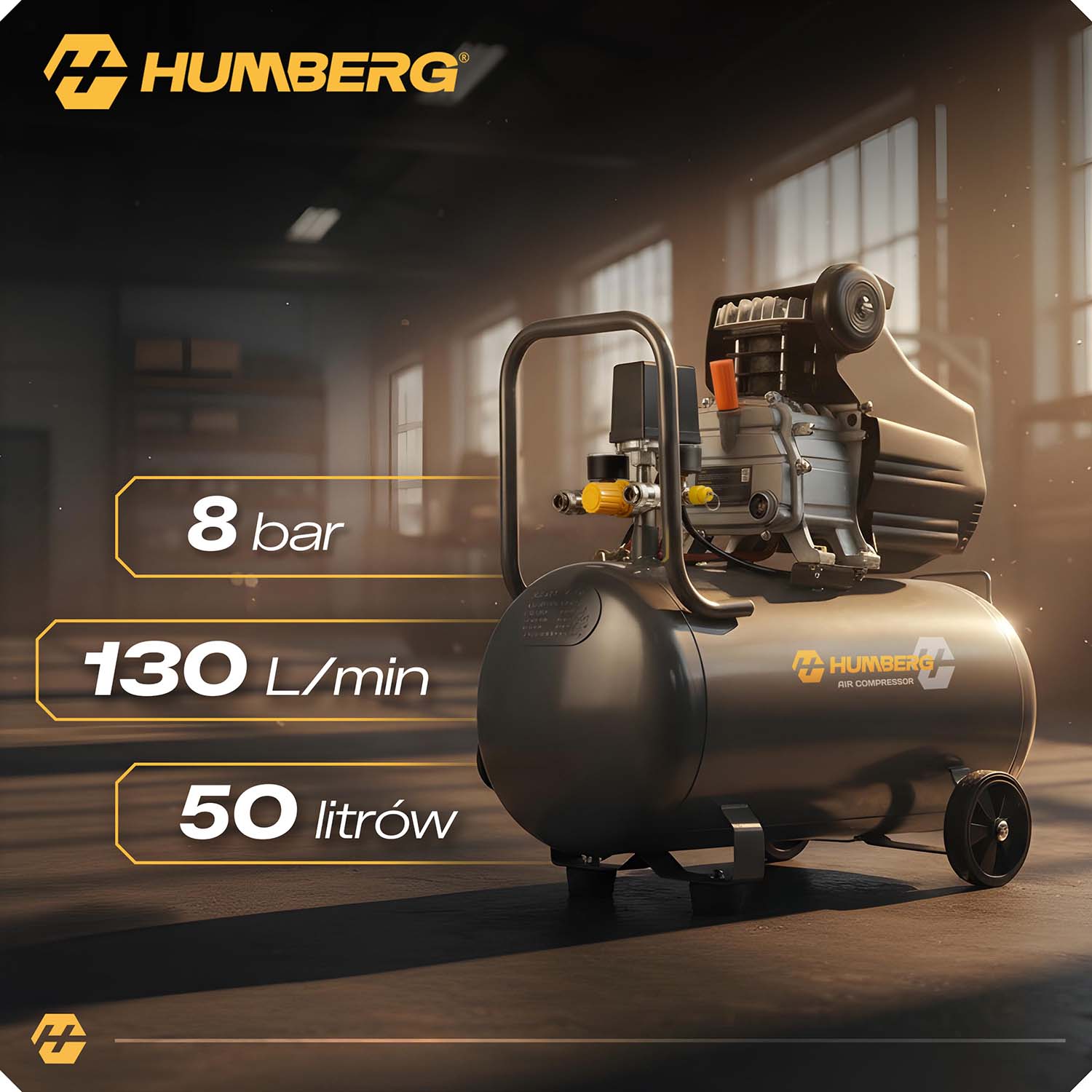 Kompresor sprężarka powietrzna olejowa 50l 8 bar + zestaw narzędzi 20w1 Humberg HM-255