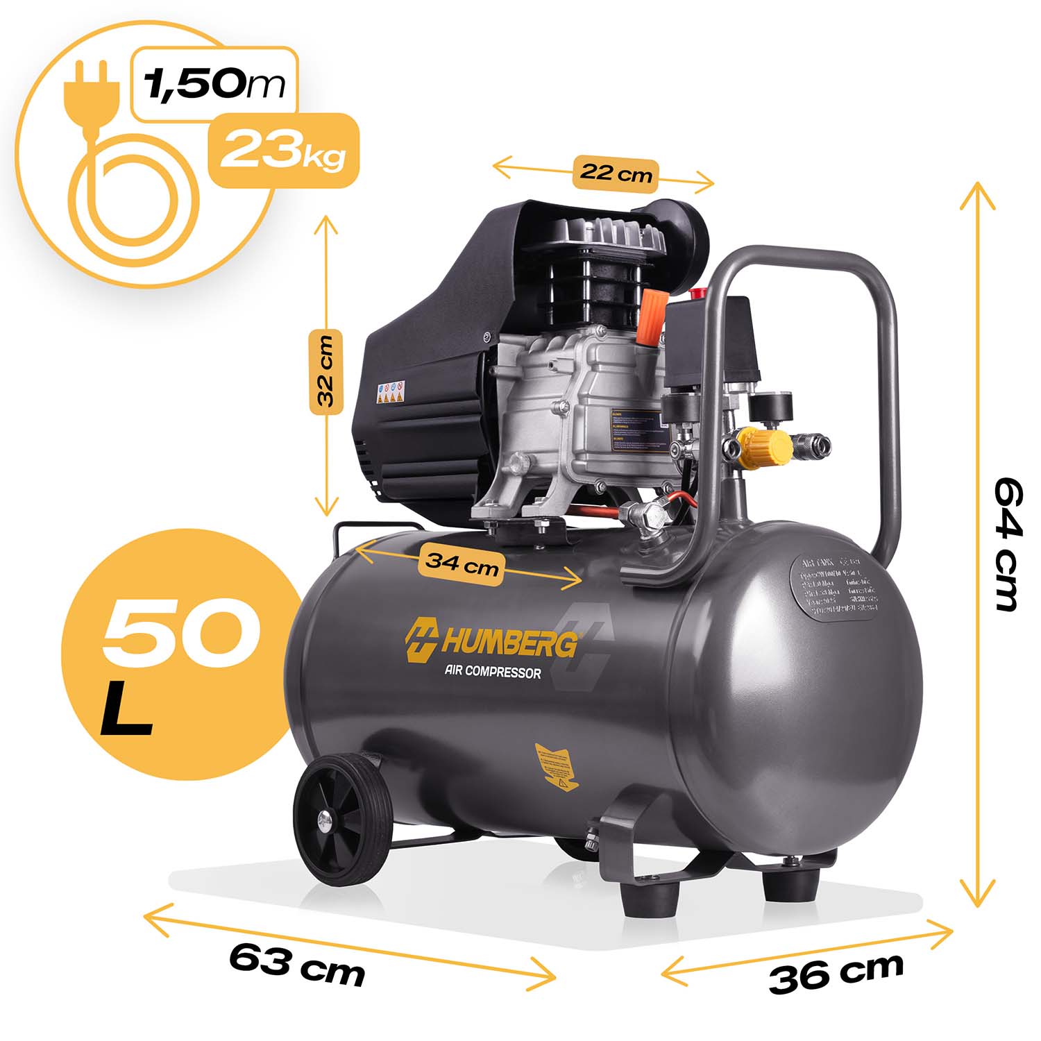 Zaawansowana pompa tłokowa |  2 x Olej w zestawie  |  Zbiornik 50 l  |  Wysoka jakość wykonania | Solidne kółka | 20 akcesoriów