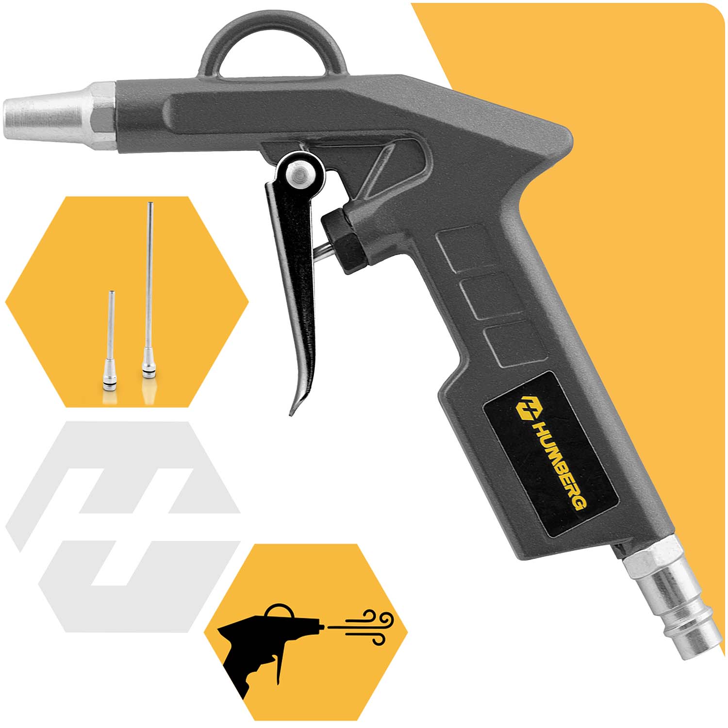 Pistolet do przedmuchiwania — precyzyjny i wygodny w użyciu — niezastąpiony do oczyszczania trudno dostępnych miejsc z kurzu, pyłu, trocin czy opiłków metalu.